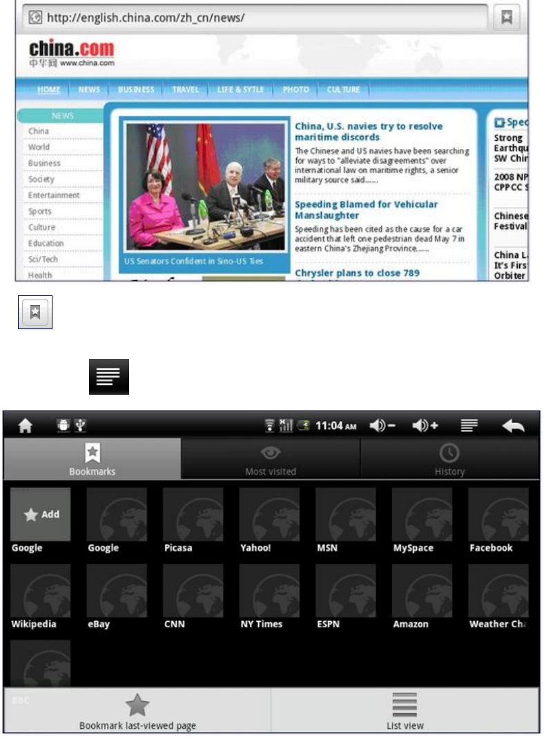 Click icon to view bookmark and history record.